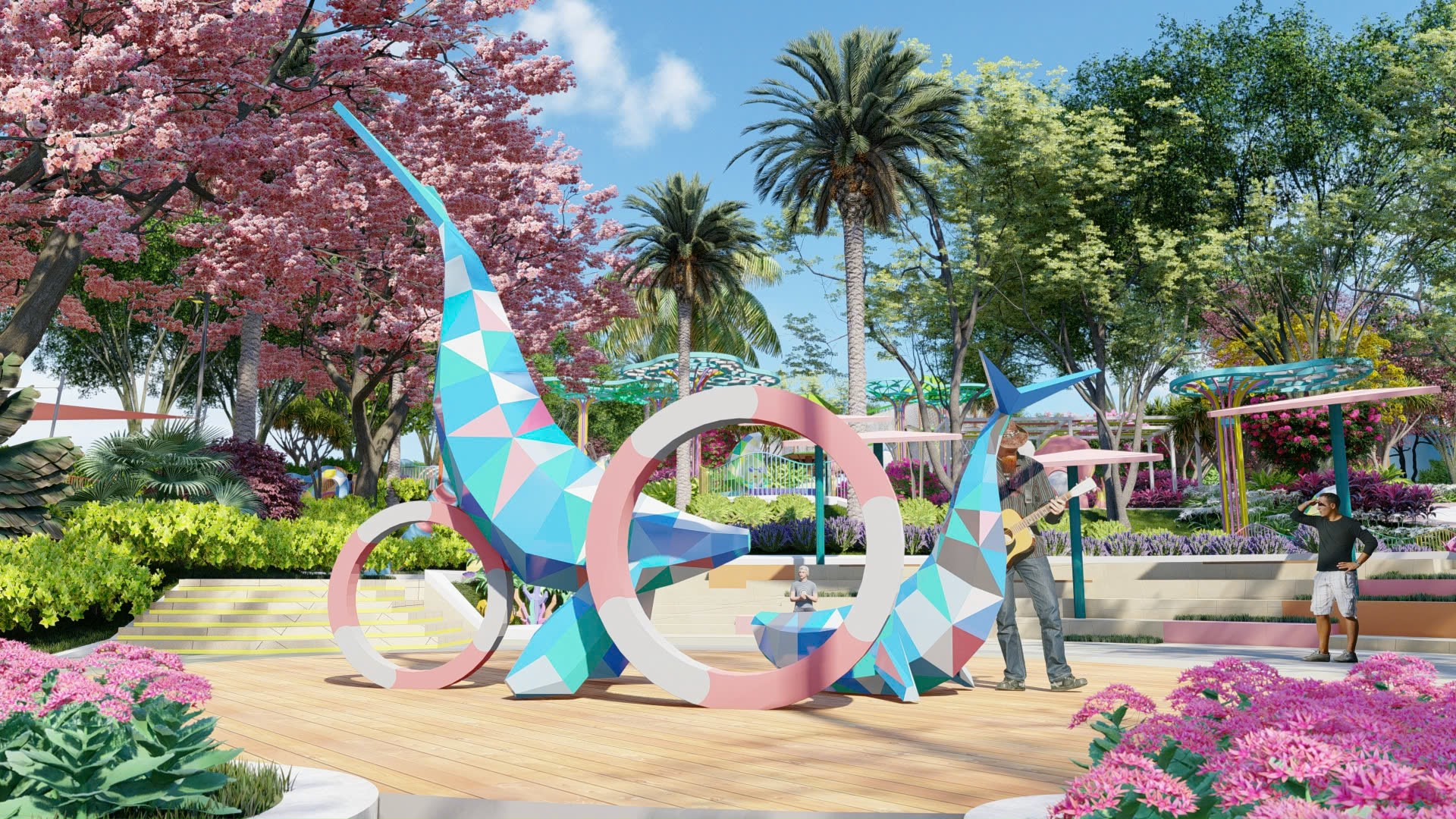 Khu công viên Summer Dry Zone đem đến trải nghiệm đa sắc màu và năng lượng: từ trò chơi vận động, không gian nghệ thuật đến các góc thư giãn “chill xịn”, đảm bảo “giờ vàng” giải trí cho mọi lứa tuổi